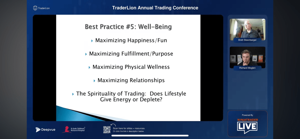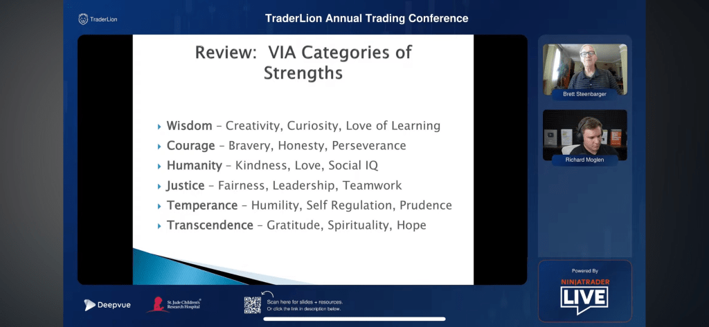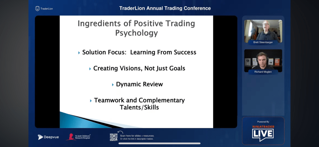 Dr. Brett Steenbarger นักจิตวิทยาคลินิกและโค้ชกับเทรดเดอร์ชั้นนำและเฮดจ์ฟันด์ ได้นำเสนอแนวคิดเกี่ยวกับการประยุกต์ใช้จิตวิทยาเชิงบวกกับการเทรด