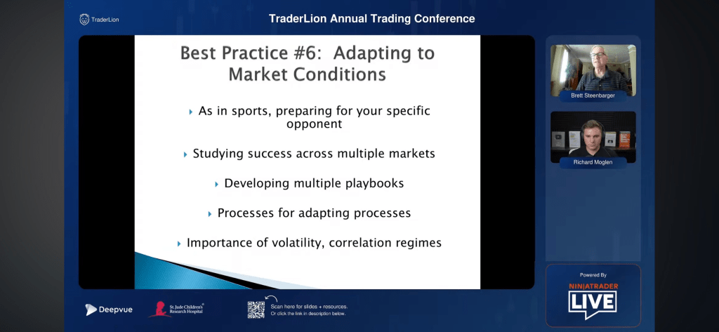 - ความสำเร็จไม่ได้มาจากแค่รูปแบบ (patterns) หรือกลยุทธ์: หากความสำเร็จในการเทรดเป็นเพียงแค่การทำตามรูปแบบกราฟหรือแนวคิดในตลาด ความสำเร็จระดับสูงจะสามารถทำซ้ำได้โดยใครก็ได้ แต่ความจริงคือ แนวคิดการเทรดที่แตกต่างกันจะทำงานได้ดีในตลาดที่แตกต่างกัน เฮดจ์ฟันด์ขนาดใหญ่ก็ไม่ได้ใช้ระบบการเทรดเดียวตลอดเวลา แต่จะมีการปรับเปลี่ยนระบบตามสภาพตลาด เช่น เมื่อความผันผวนเพิ่มขึ้นหรือลดลง
